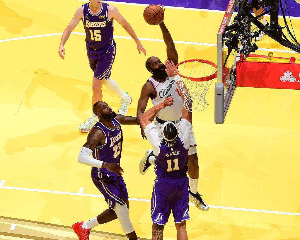 r今天的快船基本上是精锐尽出了。哈登、伦纳德双双出战,与科林斯、邓恩和祖巴茨构成先发五虎。
